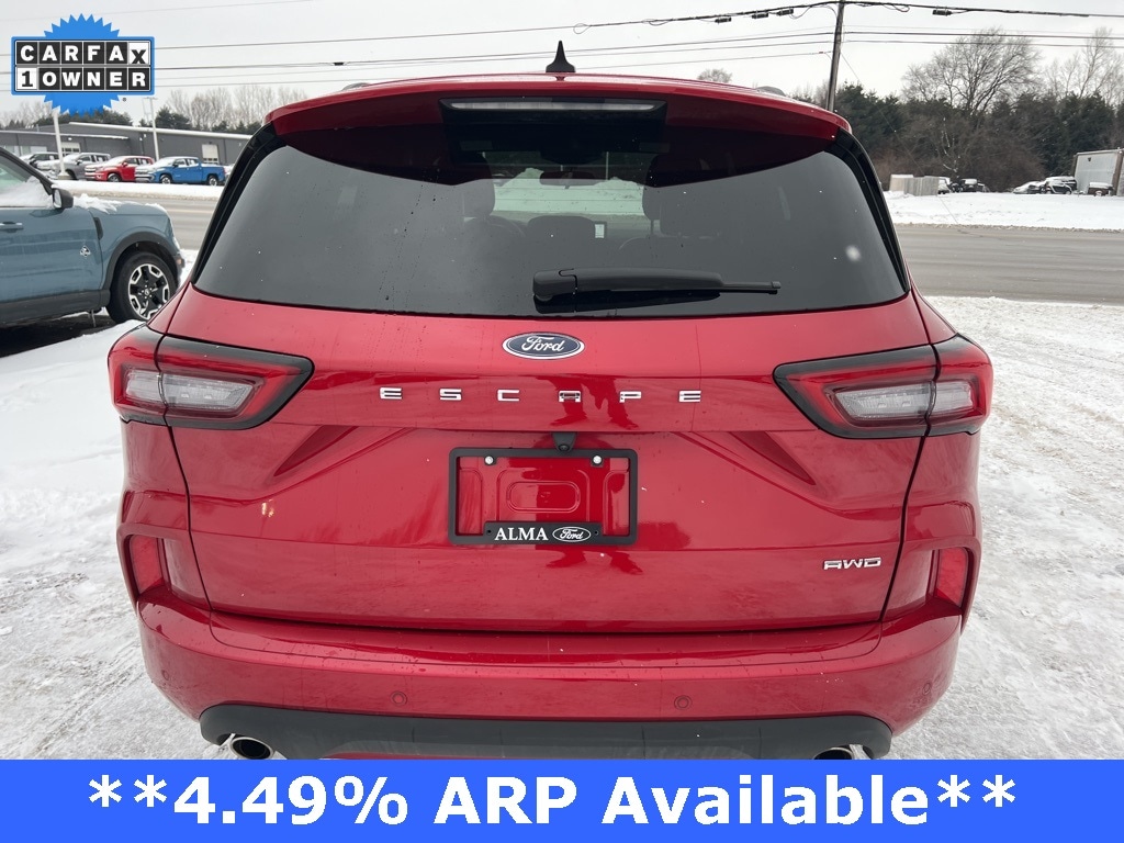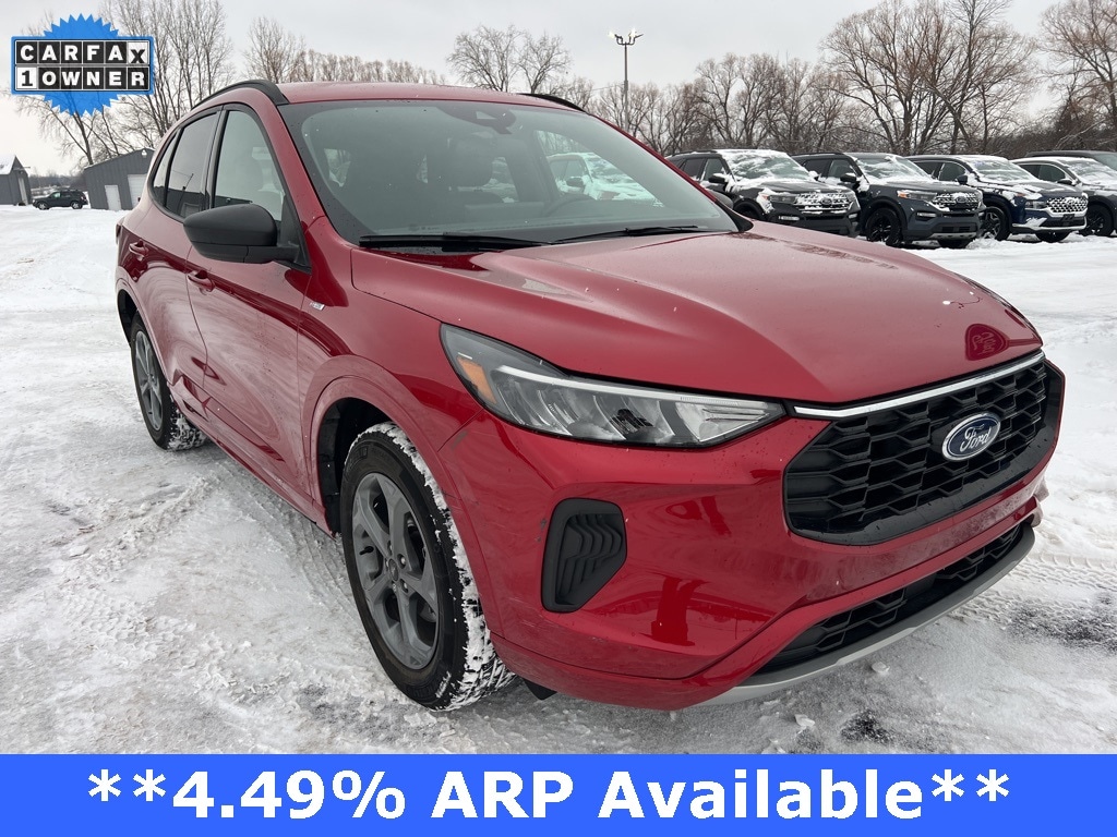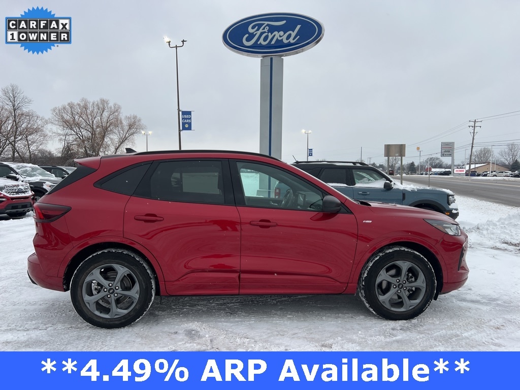AWD, Active Cruise Control, Adaptive Cruise Control w/Stop-and-Go, Cold Weather Package, Connected Navigation, Equipment Group 300A, Ford Co-Pilot360 Assist+, Heated Front Row Seats, Heated Sideview Mirrors, Heated Steering Wheel, Rear Parking Sensor, Rear-View Camera, Remote Starter System, Speed Sign Recognition, SYNC 4 w/Enhanced Voice Recognition, Tech Pack #1. 2024 Ford Escape ST-Line AWD 8-Speed Automatic 1.5L EcoBoost Rapid Red Metallic Tinted Clearcoat Certified. Your Best Price on Any New Ford Is at Alma Ford. Under new ownership and family-run, Alma Ford delivers a best price guarantee on every new Ford and top dollar for your trade. Weâre actively adding inventory â" which means we wonât be beat on trade-in value. Every vehicle is fully detailed and safety inspected by certified technicians, giving you confidence from day one. Our team is committed to a straightforward, no-pressure buying experience. â" Best Price Guarantee â" We Pay More for Trades â" Home Delivery Available We stock a wide selection of new and pre-owned vehicles, including Bronco, Escape, Edge, Explorer, Expedition, F-150, Super Duty (F-250 / F-350), Maverick, Mustang, Mach-E, Ranger, Transit, and more. ð" Call 989-699-5260 to schedule a test drive ð View inventory at www.almaford.com ð" Visit us at 2051 W. Monroe, Alma, MI 48801 Alma Ford â" under new ownership and ready to earn your business.
