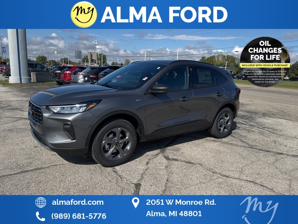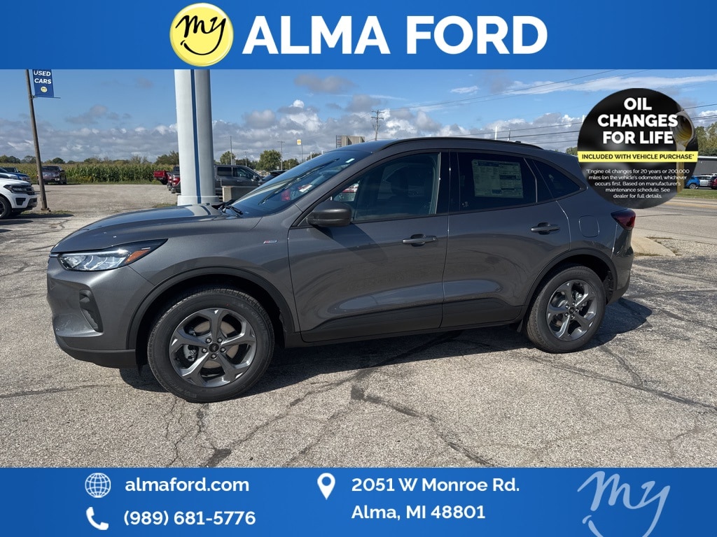 Escape ST-Line, 4D Sport Utility, AWD, Carbonized Gray Metallic, *4WD*, *ADAPTIVE CRUISE*, *ALL WHEEL DRIVE*, *APPLE CARPLAY & ANDROID AUTO*, *BLIND SPOT MONITORING SYSTEM*, *COLD WEATHER Package*, *HANDSFREE BLUETOOTH*, *HEATED SEATS*, *JUST ARRIVED*, *LANE DEPARTURE WARNING*, *LIFETIME POWERTRAIN WARRANTY*, *NEW BRAKES*, *NEW TIRES*, *OIL CHANGES for LIFE*, *PREMIUM WHEELS*, *REAR POWER LIFTGATE*, *REMOTE START*, *SUPER BUY*, Adaptive Cruise Control w/Stop-and-Go, Cold Weather Package, Connected Navigation, Equipment Group 300A, Ford Co-Pilot360 Assist+, Heated Front Row Seats, Heated Sideview Mirrors, Heated Steering Wheel, Intersection Assist, Power driver seat, Power Liftgate, Predictive Speed Assist, Rear Parking Sensor, Rear-View Camera, Remote Starter System, SYNC 4 w/Enhanced Voice Recognition, Tech Pack #1, Wheels: 18" Rock Metallic Painted Aluminum. 2025 Ford Escape ST-Line Carbonized Gray Metallic YOUR BEST PRICE on ANY NEW FORD is at Alma Ford. Get the MOST MONEY for your TRADE and BEST PRICE GUARANTEE on ANY NEW FORD! Alma Ford is your #1 choice in Michigan to get the BEST PRICE on any NEW Ford and HOME of the LIFETIME WARRANTY & OIL Changes for LIFE*. The Alma Ford team is ready to provide you with a world-class experience, ensuring that you find the perfect vehicle that fits all your needs. Every vehicle has been through a 172 point safety inspection completed by a certified technicians and fully detailed. We sell many makes and models, Pre-Owned Ford Vehicles 2025-2024-2023-2022-2021-2020-2019-2018-2017-2016-2015-2014-2013-2012-2011-2010 Ford Bronco, Bronco Sport, Edge, Escapes, Expedition, Explorer, Fusions, Focus, Flex, F-150 Series, F-250, F-350, Super Duty Diesel Trucks, Maverick, Mustang MACH-E, Mustang, Ranger, Transit, and more For sale. Take advantage of our VIP experience by calling 989-699-5260 to schedule a test drive. Read our customer reviews at www.almaford.com/customer-testimonials or view our entire selection of new and preowned vehicles at www.almaford.com, or stop by today, located at 2051 W Monroe, Alma, MI 48801. 2025 Ford Escape ST-Line AWD 8-Speed Automatic 1.5L EcoBoost