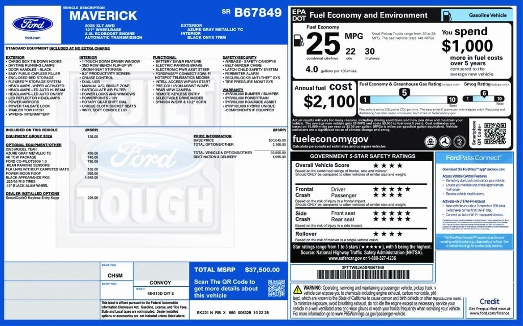 2025 Ford Maverick XLT Truck EcoBoost I4 GTDi DOHC Turbocharged VCT