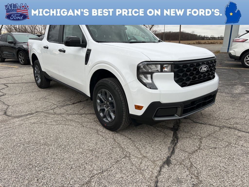 2025 Ford Maverick XLT Oxford White New Ford Vehicles â" Best Price Guarantee at Alma Ford Under new ownership and family-run, Alma Ford is your destination for new Ford vehicles at the best possible price. We offer a Best Price Guarantee and top dollar for your trade â" weâre actively buying inventory and wonât be beat on trade-in value. Best Price Guarantee on New Fords We Pay More for Trades Home Delivery Available Looking for something specific? If we donât have exactly what you want, weâre offering Ford Employee Pricing on 2026 factory orders. Build it your way and lock in exceptional savings. Choose from the latest Ford lineup, including F-150, Super Duty, Bronco, Bronco Sport, Escape, Edge, Explorer, Expedition, Maverick, Mustang, Mustang Mach-E, Ranger, Transit, and more. Call 989-699-5260 to get started Browse inventory at www.almaford.com Visit us at 2051 W. Monroe, Alma, MI 48801 Alma Ford â" under new ownership and ready to earn your business. 2025 Ford Maverick XLT AWD 8-Speed Automatic EcoBoost 2.0L I4 GTDi DOHC Turbocharged VCT