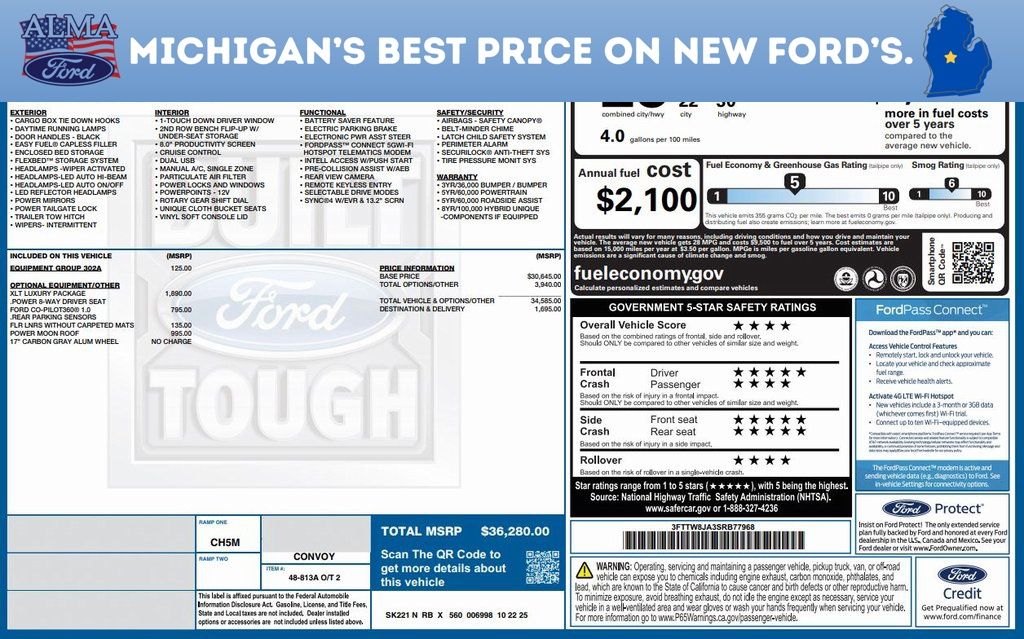 Alma Ford is proud to offer a customer-first experience designed to save you time and money on every new Ford vehicle. Under new ownership and family-run, we are committed to transparent pricing and exceptional service. See dealer for complete details. Dealer is not responsible for pricing errors. All prices plus tax, title, plate, and $280 dealer documentation fee; includes applicable manufacturer rebates. If we donât have the exact new Ford youâre looking for, we are currently offering Ford Employee Pricing on 2026 factory orders, allowing you to build your vehicle exactly the way you want at exceptional value. When you purchase a new vehicle from Alma Ford, youâll also receive Lifetime Oil Changes at our dealership. See dealer for complete program details and eligibility. We proudly serve Alma and surrounding communities including Carson City, Ithaca, Mount Pleasant, St. Johns, Saginaw, Midland, Big Rapids, Lakeview, Edmore, Breckenridge, Ashley, Shepherd, Clare, Greenville, Hemlock, Grand Rapids, Lansing, Kalamazoo, Muskegon, Grand Haven, Holland, Wyoming, and customers throughout the state of Michigan. 22/30 City/Highway MPG