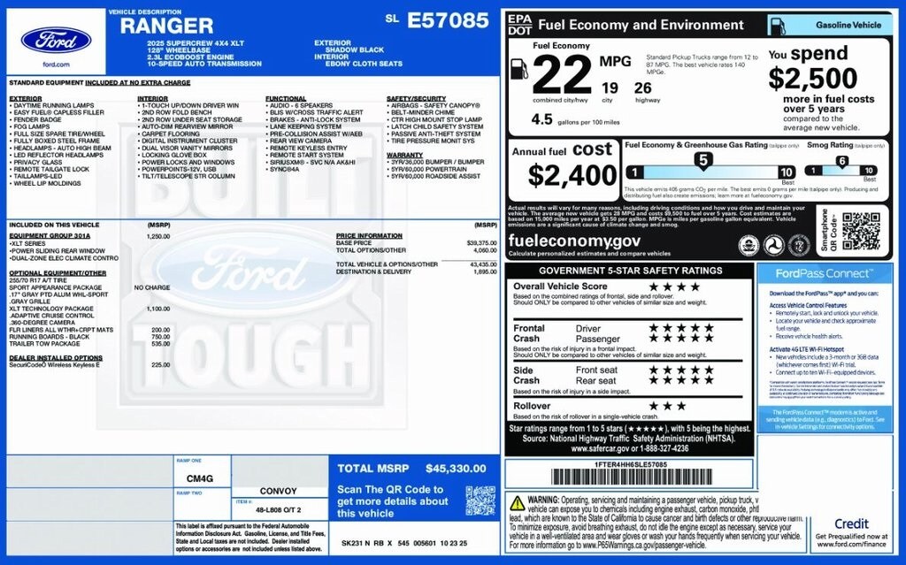 4WD. 2025 Ford Ranger XLT Shadow YOUR BEST PRICE on ANY NEW FORD is at Alma Ford. Get the MOST MONEY for your TRADE and BEST PRICE GUARANTEE on ANY NEW FORD! Alma Ford is your #1 choice in Michigan to get the BEST PRICE on any NEW Ford and HOME of the OIL Changes for LIFE*. The Alma Ford team is ready to provide you with a world-class experience, ensuring that you find the perfect vehicle that fits all your needs. Every vehicle has been through a 172 point safety inspection completed by a certified technicians and fully detailed. We sell many makes and models, Pre-Owned Ford Vehicles 2025-2024-2023-2022-2021-2020-2019-2018-2017-2016-2015-2014-2013-2012-2011-2010 Ford Bronco, Bronco Sport, Edge, Escapes, Expedition, Explorer, Fusions, Focus, Flex, F-150 Series, F-250, F-350, Super Duty Diesel Trucks, Maverick, Mustang MACH-E, Mustang, Ranger, Transit, and more For sale. Take advantage of our VIP experience by calling 989-699-5260 to schedule a test drive. Read our customer reviews at www.almaford.com/customer-testimonials or view our entire selection of new and preowned vehicles at www.almaford.com, or stop by today, located at 2051 W Monroe, Alma, MI 48801. 2025 Ford Ranger XLT 4WD 10-Speed Automatic EcoBoost 2.3L I4 GTDi DOHC Turbocharged VCT