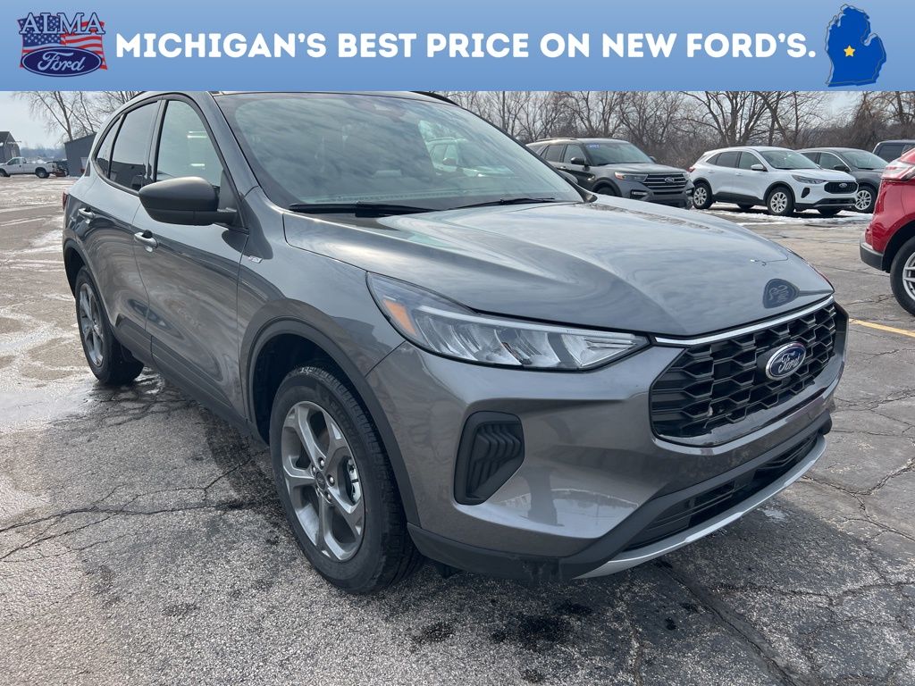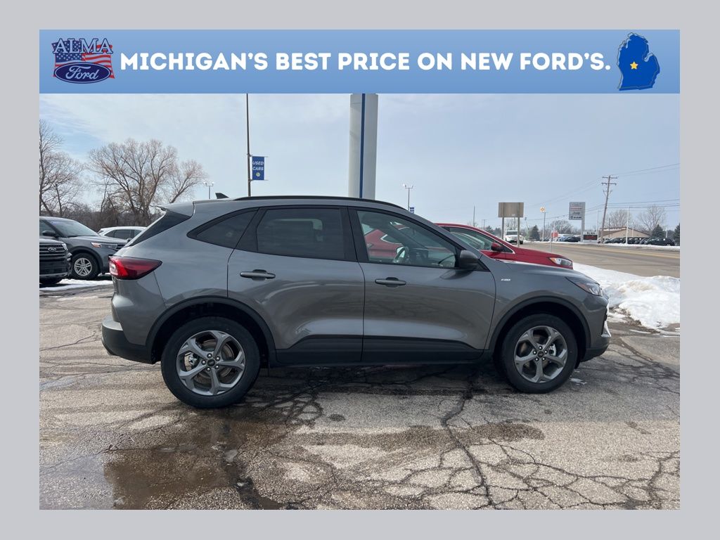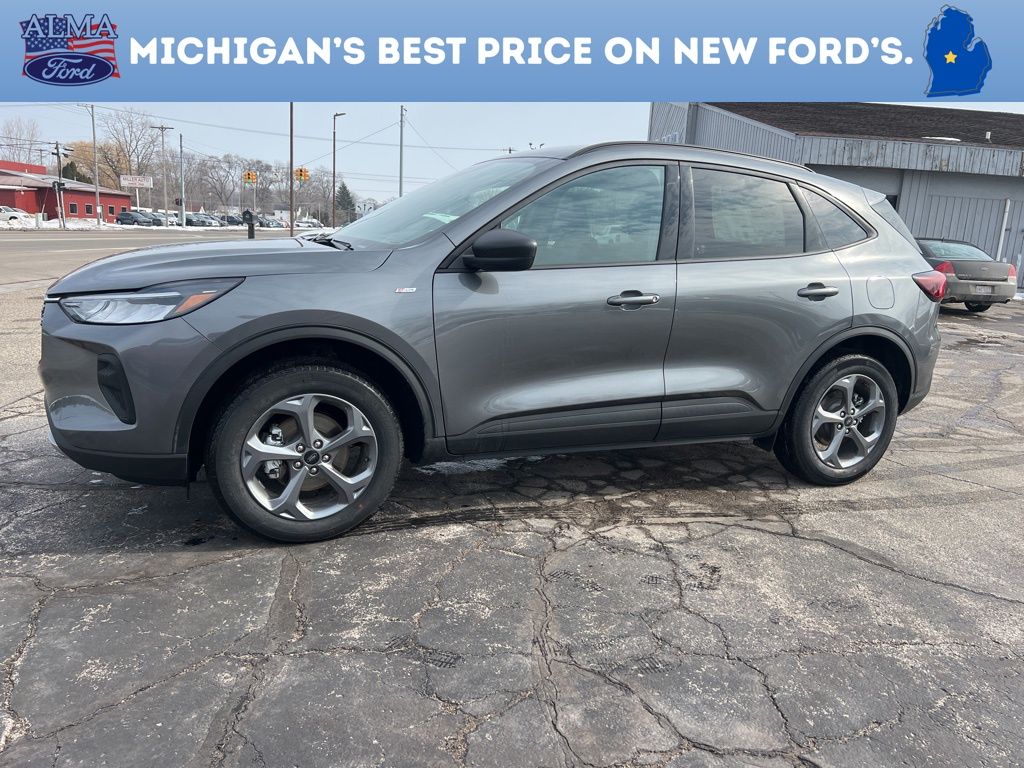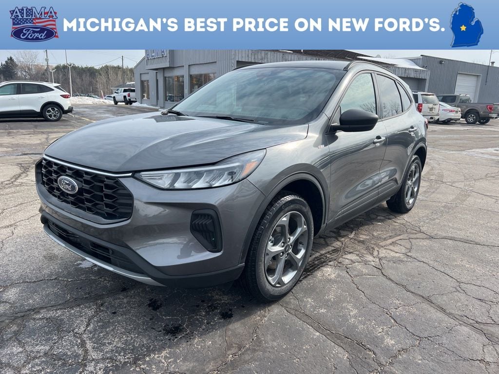 AWD, *OIL CHANGES for LIFE*, 3.81 Axle Ratio, 4-Way Manual Front Passenger Seat, 8-Way Power Driver Seat, Equipment Group 300A, Ford App, Partial Vinyl/Cloth Front Sport Contour Bucket Seats with Red Stitching, Radio: AM/FM Stereo with SiriusXM 360L, SYNC 4, Wheels: 18" Rock Metallic Painted Aluminum. 2026 Ford Escape ST-Line Gray Metallic Your Best Price on Any New Ford Is at Alma Ford. Under new ownership and family-run, Alma Ford delivers a best price guarantee on every new Ford and top dollar for your trade. Weâre actively adding inventory â" which means we wonât be beat on trade-in value. Every vehicle is fully detailed and safety inspected by certified technicians, giving you confidence from day one. Our team is committed to a straightforward, no-pressure buying experience. â" Best Price Guarantee â" We Pay More for Trades â" Home Delivery Available We stock a wide selection of new and pre-owned vehicles, including Bronco, Escape, Edge, Explorer, Expedition, F-150, Super Duty (F-250 / F-350), Maverick, Mustang, Mach-E, Ranger, Transit, and more. ð" Call 989-699-5260 to schedule a test drive ð View inventory at www.almaford.com ð" Visit us at 2051 W. Monroe, Alma, MI 48801 Alma Ford â" under new ownership and ready to earn your business. 2026 Ford Escape ST-Line AWD 8-Speed Automatic 1.5L EcoBoost
