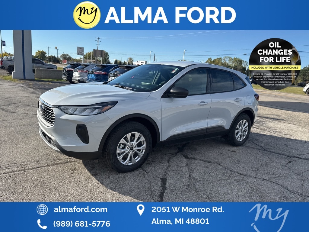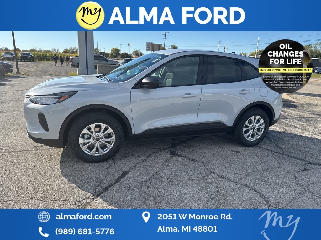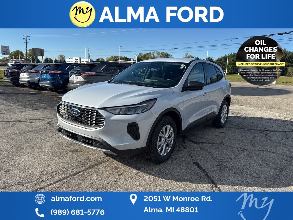 Escape Active, AWD, Space Silver Metallic, Ebony w/Unique Cloth Front Bucket Seats, *ADAPTIVE CRUISE*, *APPLE CARPLAY & ANDROID AUTO*, *BLIND SPOT MONITORING SYSTEM*, *COLD WEATHER Package*, *FULLY SERVICED*, *HANDSFREE BLUETOOTH*, *HEATED SEATS*, *HEATED STEERING WHEEL*, *JUST ARRIVED*, *LANE DEPARTURE WARNING*, *LIFETIME POWERTRAIN WARRANTY*, *NAVIGATION*, *NEW BRAKES*, *NEW TIRES*, *OIL CHANGES for LIFE*, *PREMIUM WHEELS*, *REAR POWER LIFTGATE*, *REMOTE START*, *SUPER BUY*, Adaptive Cruise Control w/Stop-and-Go, Cold Weather Package, Connected Navigation, Equipment Group 200A, Ford Co-Pilot360 Assist+, Heated Front Row Seats, Heated Sideview Mirrors, Heated Steering Wheel, Intersection Assist, Predictive Speed Assist, Rear Parking Sensor, Rear-View Camera, Remote Starter System, SYNC 4 w/Enhanced Voice Recognition, Tech Pack #1, Wheels: 17" Shadow Silver-Painted Aluminum. 2026 Ford Escape Active Space Silver Metallic YOUR BEST PRICE on ANY NEW FORD is at Alma Ford. Get the MOST MONEY for your TRADE and BEST PRICE GUARANTEE on ANY NEW FORD! Alma Ford is your #1 choice in Michigan to get the BEST PRICE on any NEW Ford and HOME of the LIFETIME WARRANTY & OIL Changes for LIFE*. The Alma Ford team is ready to provide you with a world-class experience, ensuring that you find the perfect vehicle that fits all your needs. Every vehicle has been through a 172 point safety inspection completed by a certified technicians and fully detailed. We sell many makes and models, Pre-Owned Ford Vehicles 2025-2024-2023-2022-2021-2020-2019-2018-2017-2016-2015-2014-2013-2012-2011-2010 Ford Bronco, Bronco Sport, Edge, Escapes, Expedition, Explorer, Fusions, Focus, Flex, F-150 Series, F-250, F-350, Super Duty Diesel Trucks, Maverick, Mustang MACH-E, Mustang, Ranger, Transit, and more For sale. Take advantage of our VIP experience by calling 989-699-5260 to schedule a test drive. Read our customer reviews at www.almaford.com/customer-testimonials or view our entire selection of new and preowned vehicles at www.almaford.com, or stop by today, located at 2051 W Monroe, Alma, MI 48801. 2026 Ford Escape Active AWD 8-Speed Automatic 1.5L EcoBoost