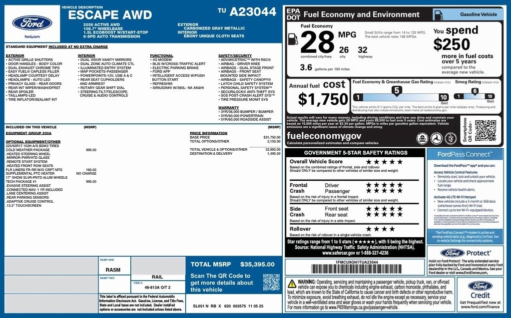 AWD. 2026 Ford Escape ST-Line Select Black 2026 Ford Escape ST-Line Select AWD 8-Speed Automatic EcoBoost 2.0L I4 GTDi DOHC Turbocharged VCT