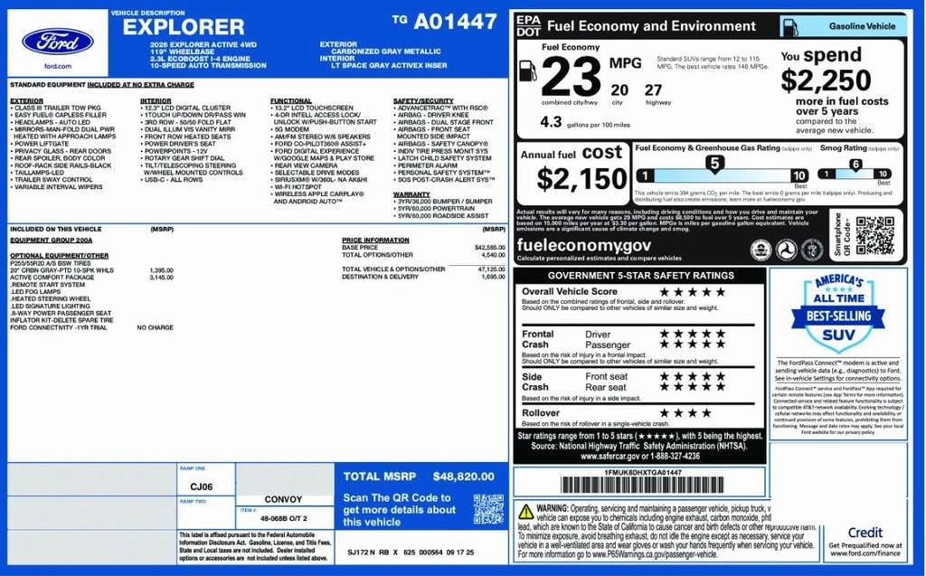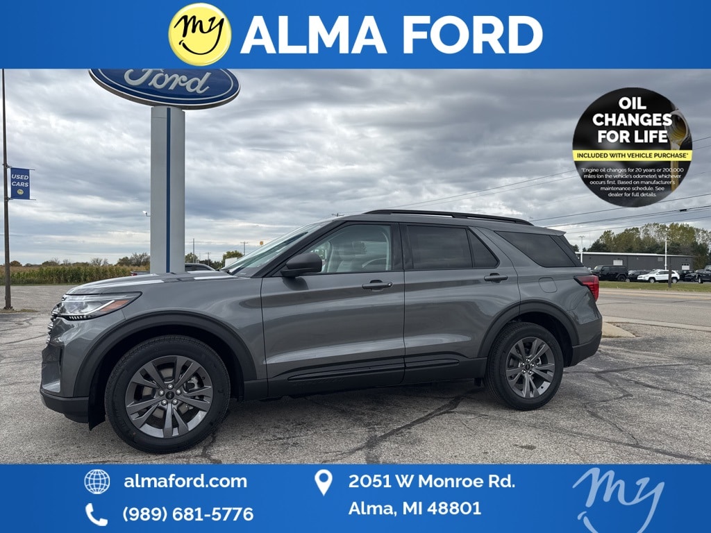 Explorer Active, 2.3L EcoBoost I-4, 4WD, Space Gray w/Heated ActiveX Seating Material Captain's Chairs, *3rd ROW SEATS*, *ACCIDENT FREE*, *ADAPTIVE CRUISE*, *APPLE CARPLAY & ANDROID AUTO*, *BLIND SPOT MONITORING SYSTEM*, *FULLY SERVICED*, *HANDSFREE BLUETOOTH*, *HEATED SEATS*, *HEATED STEERING WHEEL*, *JUST ARRIVED*, *LANE DEPARTURE WARNING*, *LEATHER HEATED POWER SEATS*, *NAVIGATION*, *NEW BRAKES*, *NEW TIRES*, *OIL CHANGES for LIFE*, *REAR POWER LIFTGATE*, *REMOTE START*, *SUPER BUY*, *TOW PACKAGE*, 8 USB Ports, Active Badging, Active Comfort Package, Active Noise Cancellation, Black Lower Bodyside Cladding w/Chrome Accent, Black Roof-Rack Side Rails, Equipment Group 200A Standard Package, Front Fascia, Heated ActiveX Seating Material Captain's Chairs, Heated Steering Wheel, Manual-Folding Sideview Mirrors, Navigation System, Power Liftgate, Remote Start System, Second Row HVAC Controls, Unique Cloth Heated Captain's Chairs, Vinyl-Wrapped Steering Wheel, Wheels: 20" Carbonized Gray-Painted Aluminum. 2026 Ford Explorer Active Carbonized Gray Metallic YOUR BEST PRICE on ANY NEW FORD is at Alma Ford. Get the MOST MONEY for your TRADE and BEST PRICE GUARANTEE on ANY NEW FORD! Alma Ford is your #1 choice in Michigan to get the BEST PRICE on any NEW Ford and HOME of the OIL Changes for LIFE*. The Alma Ford team is ready to provide you with a world-class experience, ensuring that you find the perfect vehicle that fits all your needs. Every vehicle has been through a 172 point safety inspection completed by a certified technicians and fully detailed. We sell many makes and models, Pre-Owned Ford Vehicles 2025-2024-2023-2022-2021-2020-2019-2018-2017-2016-2015-2014-2013-2012-2011-2010 Ford Bronco, Bronco Sport, Edge, Escapes, Expedition, Explorer, Fusions, Focus, Flex, F-150 Series, F-250, F-350, Super Duty Diesel Trucks, Maverick, Mustang MACH-E, Mustang, Ranger, Transit, and more For sale. Take advantage of our VIP experience by calling 989-699-5260 to schedule a test drive. Read our customer reviews at www.almaford.com/customer-testimonials or view our entire selection of new and preowned vehicles at www.almaford.com, or stop by today, located at 2051 W Monroe, Alma, MI 48801. 2026 Ford Explorer Active 4WD 10-Speed Automatic 2.3L EcoBoost I-4