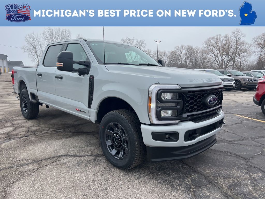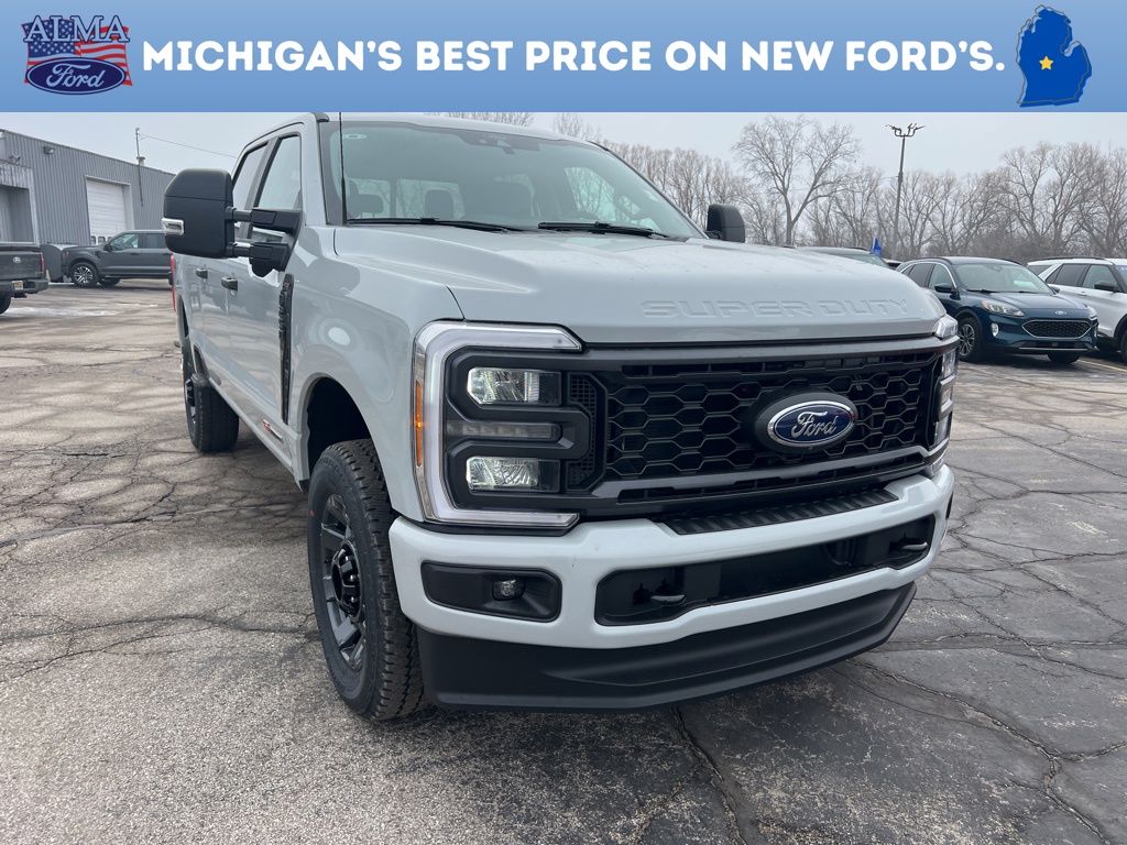 4WD. 2026 Ford F-250SD Your Best Price on Any New Ford Is at Alma Ford. Under new ownership and family-run, Alma Ford delivers a best price guarantee on every new Ford and top dollar for your trade. We're actively adding inventory â" which means we won't be beat on trade-in value. Every vehicle is fully detailed and safety inspected by certified technicians, giving you confidence from day one. Our team is committed to a straightforward, no-pressure buying experience. â" Best Price Guarantee â" We Pay More for Trades â" Home Delivery Available We stock a wide selection of new and pre-owned vehicles, including Bronco, Escape, Edge, Explorer, Expedition, F-150, Super Duty (F-250 / F-350), Maverick, Mustang, Mach-E, Ranger, Transit, and more. ð" Call 989-699-5260 to schedule a test drive ð View inventory at www.almaford.com ð" Visit us at 2051 W. Monroe, Alma, MI 48801 Alma Ford â" under new ownership and ready to earn your business. 2026 Ford F-250SD 4WD 10-Speed Automatic 6.7L High Output Power Stroke V8 Diesel