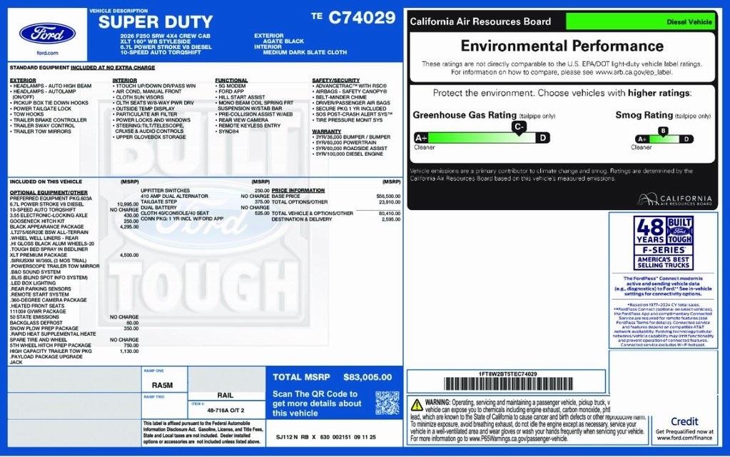 - SpecialPackage: Discount – F-250® High Capacity Package with Tremor® Off-Road Package