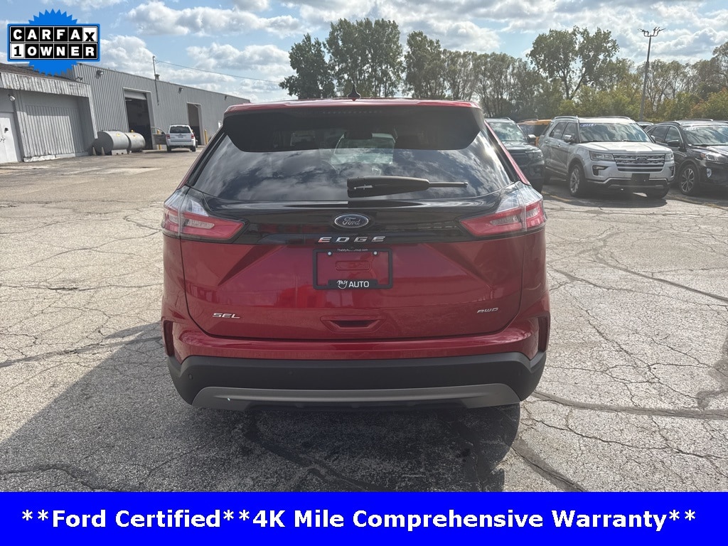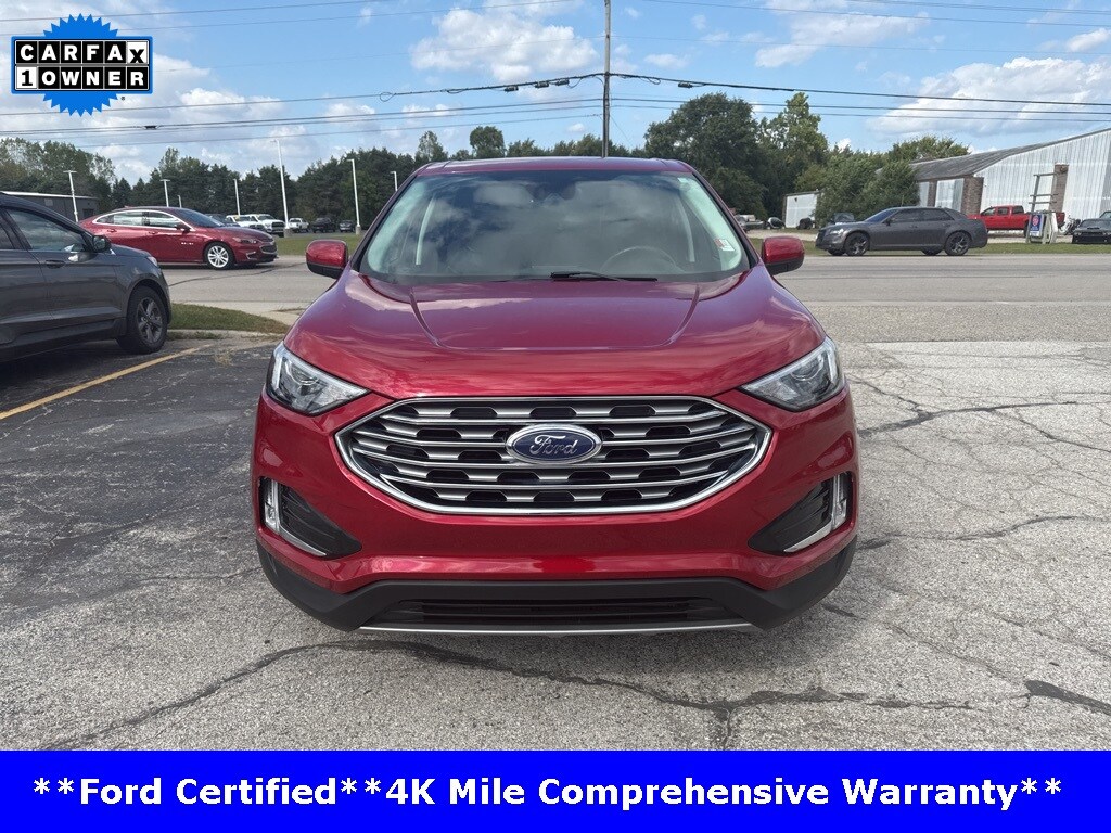 Edge SEL, 4D Sport Utility, EcoBoost 2.0L I4 GTDi DOHC Turbocharged VCT, AWD, *ALL WHEEL DRIVE*, *APPLE CARPLAY & ANDROID AUTO*, *BLIND SPOT MONITORING SYSTEM*, *FULLY SERVICED*, *HANDSFREE BLUETOOTH*, *HEATED SEATS*, *HEATED STEERING WHEEL*, *JUST ARRIVED*, *LANE DEPARTURE WARNING*, *OIL CHANGES for LIFE*, *REMOTE START*, *SUPER BUY*, *VERY CLEAN*, 110V/150W AC Power Outlet, Convenience Package, Equipment Group 201A, Fog Lamps w/Chrome Bezel, Ford Certified 90 Day/ 4K Comprehensive Warranty, Perimeter Alarm, Power Liftgate, Remote Start System, SecuriCode Keyless Entry Keypad, Universal Garage Door Opener (UGDO), Wheels: 18" Sparkle Silver-Painted Aluminum, Wireless Charging Pad. 2022 Ford Edge SEL AWD 8-Speed Automatic EcoBoost 2.0L I4 GTDi DOHC Turbocharged VCT Rapid Red Metallic Tinted Clearcoat Certified. Your Best Price on Any New Ford Is at Alma Ford. Under new ownership and family-run, Alma Ford delivers a best price guarantee on every new Ford and top dollar for your trade. Weâre actively adding inventory â" which means we wonât be beat on trade-in value. Every vehicle is fully detailed and safety inspected by certified technicians, giving you confidence from day one. Our team is committed to a straightforward, no-pressure buying experience. â" Best Price Guarantee â" We Pay More for Trades â" Home Delivery Available We stock a wide selection of new and pre-owned vehicles, including Bronco, Escape, Edge, Explorer, Expedition, F-150, Super Duty (F-250 / F-350), Maverick, Mustang, Mach-E, Ranger, Transit, and more. ð" Call 989-699-5260 to schedule a test drive ð View inventory at www.almaford.com ð" Visit us at 2051 W. Monroe, Alma, MI 48801 Alma Ford â" under new ownership and ready to earn your business.