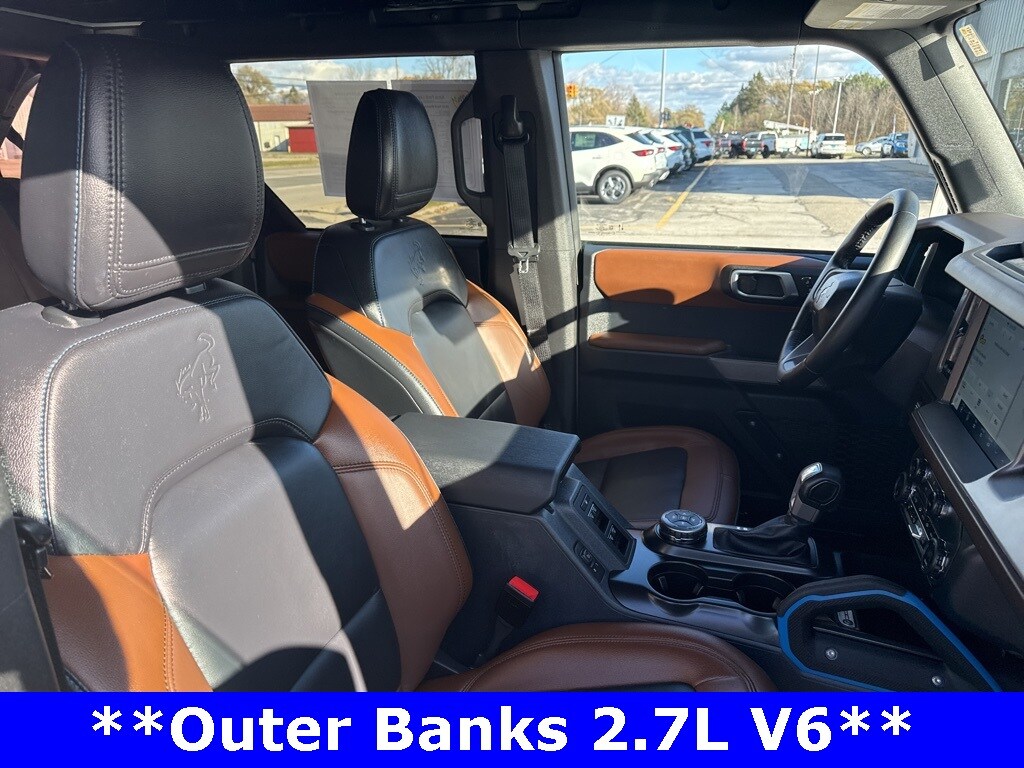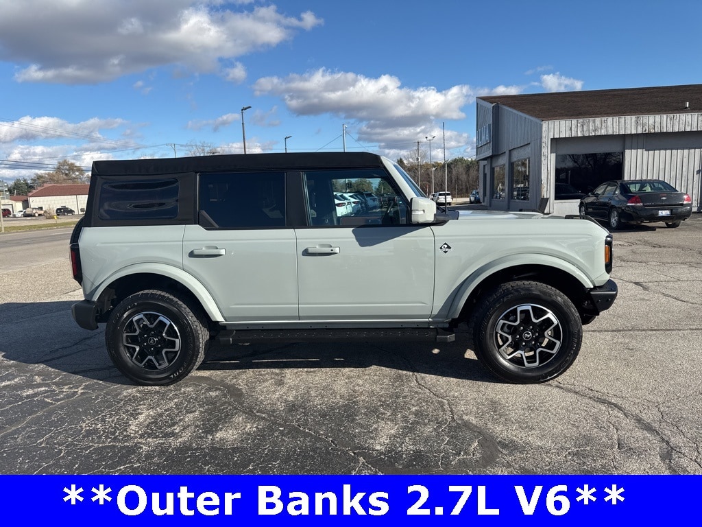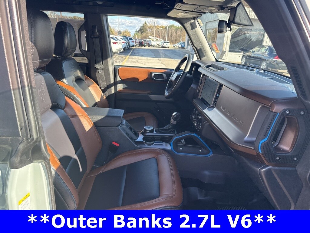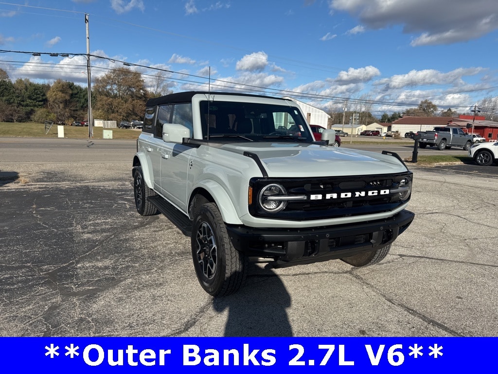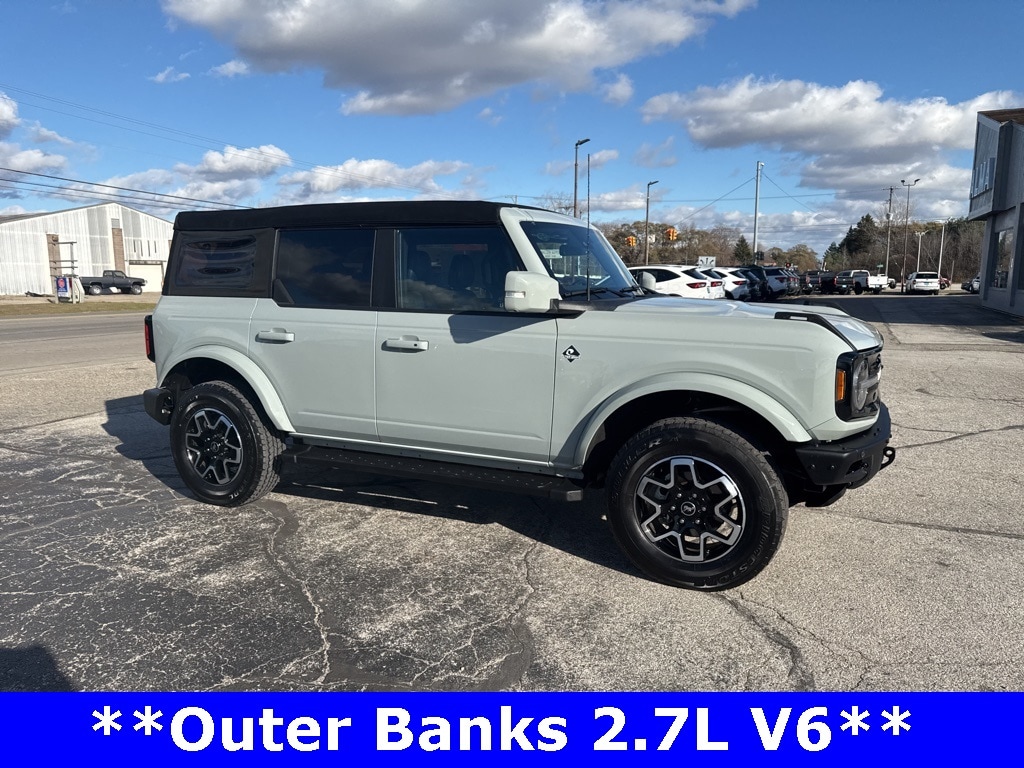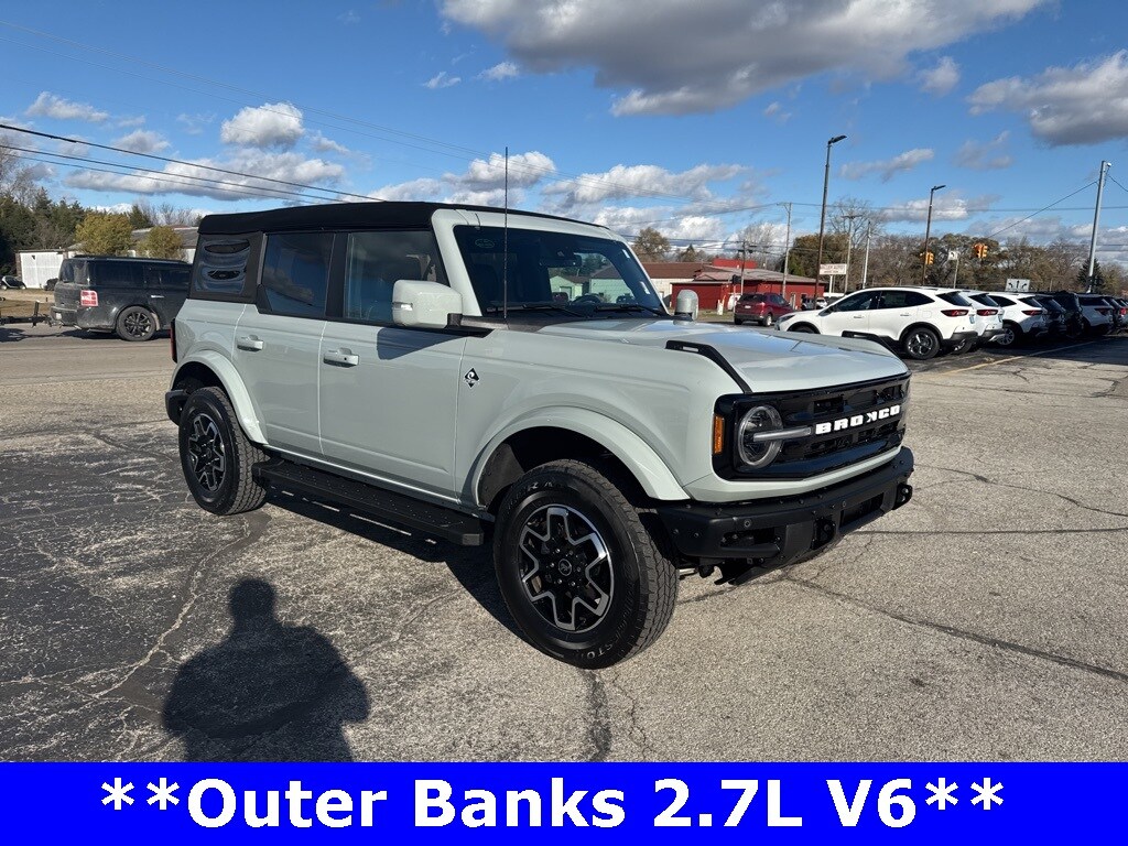 *CLEAN CARFAX 1-OWNER*,*LOCAL TRADE*,*4WD*, *ADAPTIVE CRUISE*, *HEATED STEERING WHEEL*, *JUST ARRIVED*, *OIL CHANGES for LIFE*, ABS brakes, Alloy wheels, Compass, Electronic Stability Control, Front dual zone A/C, Heated door mirrors, Heated front seats, Illuminated entry, Low tire pressure warning, Remote keyless entry, Traction control. 2023 Ford Bronco Outer Banks Cactus Gray YOUR BEST PRICE on ANY NEW FORD is at Alma Ford. Get the MOST MONEY for your TRADE and BEST PRICE GUARANTEE on ANY NEW FORD! Alma Ford is your #1 choice in Michigan to get the BEST PRICE on any NEW Ford and HOME of the OIL Changes for LIFE*. The Alma Ford team is ready to provide you with a world-class experience, ensuring that you find the perfect vehicle that fits all your needs. Every vehicle has been through a 172 point safety inspection completed by a certified technicians and fully detailed. We sell many makes and models, Pre-Owned Ford Vehicles 2025-2024-2023-2022-2021-2020-2019-2018-2017-2016-2015-2014-2013-2012-2011-2010 Ford Bronco, Bronco Sport, Edge, Escapes, Expedition, Explorer, Fusions, Focus, Flex, F-150 Series, F-250, F-350, Super Duty Diesel Trucks, Maverick, Mustang MACH-E, Mustang, Ranger, Transit, and more For sale. Take advantage of our VIP experience by calling 989-699-5260 to schedule a test drive. Read our customer reviews at www.almaford.com/customer-testimonials or view our entire selection of new and preowned vehicles at www.almaford.com, or stop by today, located at 2051 W Monroe, Alma, MI 48801. 2023 Ford Bronco Outer Banks 4WD 10-Speed Automatic 2.7L EcoBoost V6