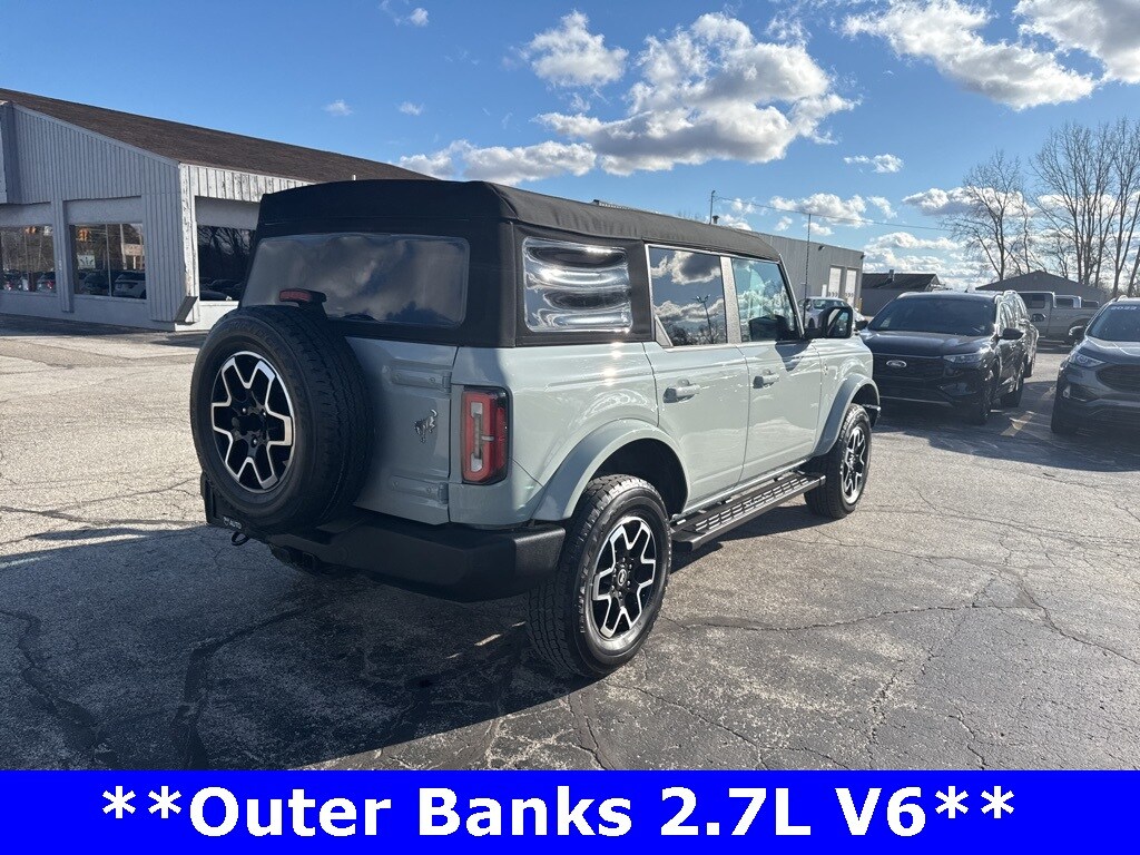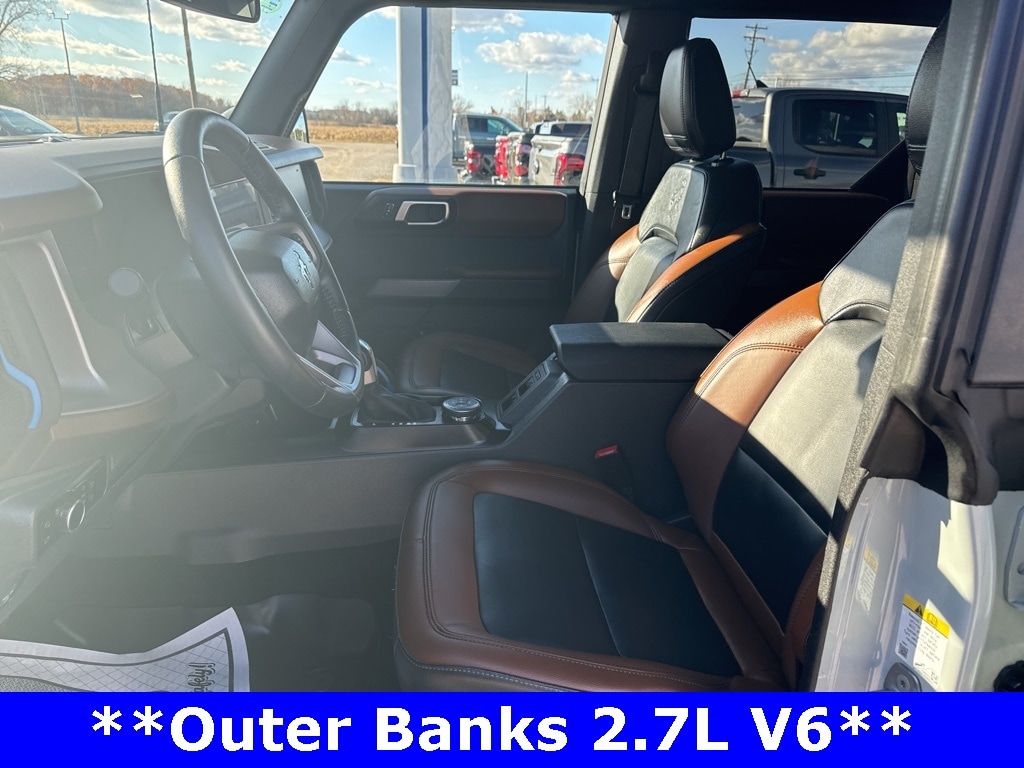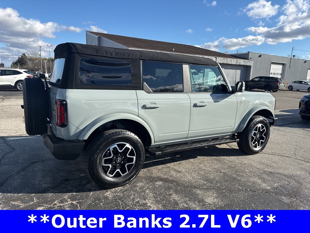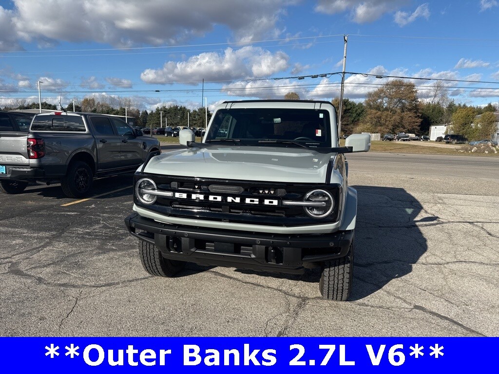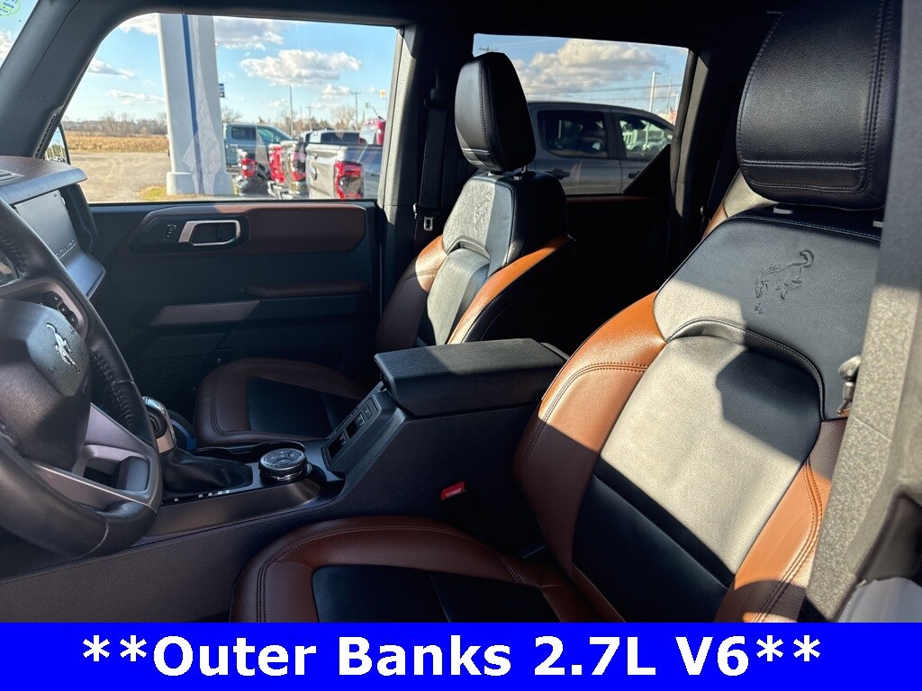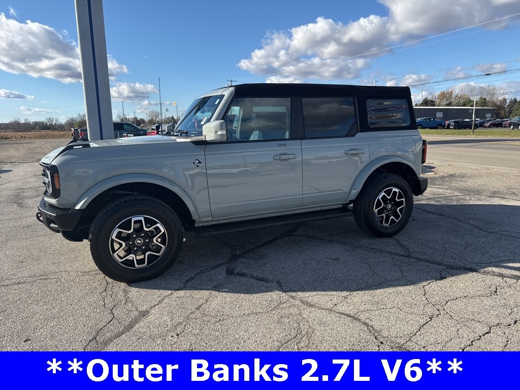 *CLEAN CARFAX 1-OWNER*,*LOCAL TRADE*,*4WD*, *ADAPTIVE CRUISE*, *HEATED STEERING WHEEL*, *JUST ARRIVED*, *OIL CHANGES for LIFE*, ABS brakes, Alloy wheels, Compass, Electronic Stability Control, Front dual zone A/C, Heated door mirrors, Heated front seats, Illuminated entry, Low tire pressure warning, Remote keyless entry, Traction control. 2023 Ford Bronco Outer Banks Cactus Gray YOUR BEST PRICE on ANY NEW FORD is at Alma Ford. Get the MOST MONEY for your TRADE and BEST PRICE GUARANTEE on ANY NEW FORD! Alma Ford is your #1 choice in Michigan to get the BEST PRICE on any NEW Ford and HOME of the OIL Changes for LIFE*. The Alma Ford team is ready to provide you with a world-class experience, ensuring that you find the perfect vehicle that fits all your needs. Every vehicle has been through a 172 point safety inspection completed by a certified technicians and fully detailed. We sell many makes and models, Pre-Owned Ford Vehicles 2025-2024-2023-2022-2021-2020-2019-2018-2017-2016-2015-2014-2013-2012-2011-2010 Ford Bronco, Bronco Sport, Edge, Escapes, Expedition, Explorer, Fusions, Focus, Flex, F-150 Series, F-250, F-350, Super Duty Diesel Trucks, Maverick, Mustang MACH-E, Mustang, Ranger, Transit, and more For sale. Take advantage of our VIP experience by calling 989-699-5260 to schedule a test drive. Read our customer reviews at www.almaford.com/customer-testimonials or view our entire selection of new and preowned vehicles at www.almaford.com, or stop by today, located at 2051 W Monroe, Alma, MI 48801. 2023 Ford Bronco Outer Banks 4WD 10-Speed Automatic 2.7L EcoBoost V6