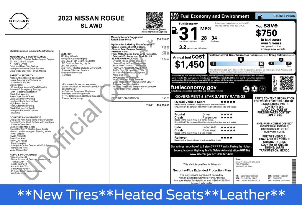 This 2023 Nissan Rogue SL is a true standout in its class, offering a refined and sophisticated driving experience that will exceed your expectations. With its impressive fuel efficiency, advanced safety features, and premium amenities, this Rogue SL is the perfect choice for the discerning buyer who demands the best.