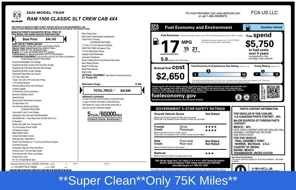 2020 Ram 1500 Classic SLT Truck HEMI V8 Multi Displacement VVT