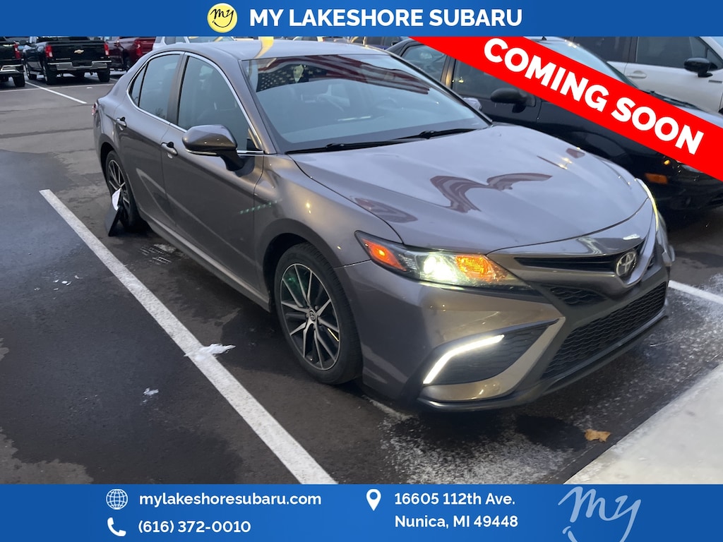 2.5L I4 DOHC 16V, AWD, *ADAPTIVE CRUISE*, *ALL WHEEL DRIVE*, *APPLE CARPLAY & ANDROID AUTO*, *LANE DEPARTURE WARNING*, *LOCAL TRADE*, *OIL CHANGES for LIFE*, ABS brakes, Active Cruise Control, Alloy wheels, Electronic Stability Control, Front dual zone A/C, Heated door mirrors, Illuminated entry, Low tire pressure warning, Remote keyless entry, Traction control. Predawn Gray Mica 2022 Toyota Camry SE AWD 8-Speed Automatic 2.5L I4 DOHC 16V